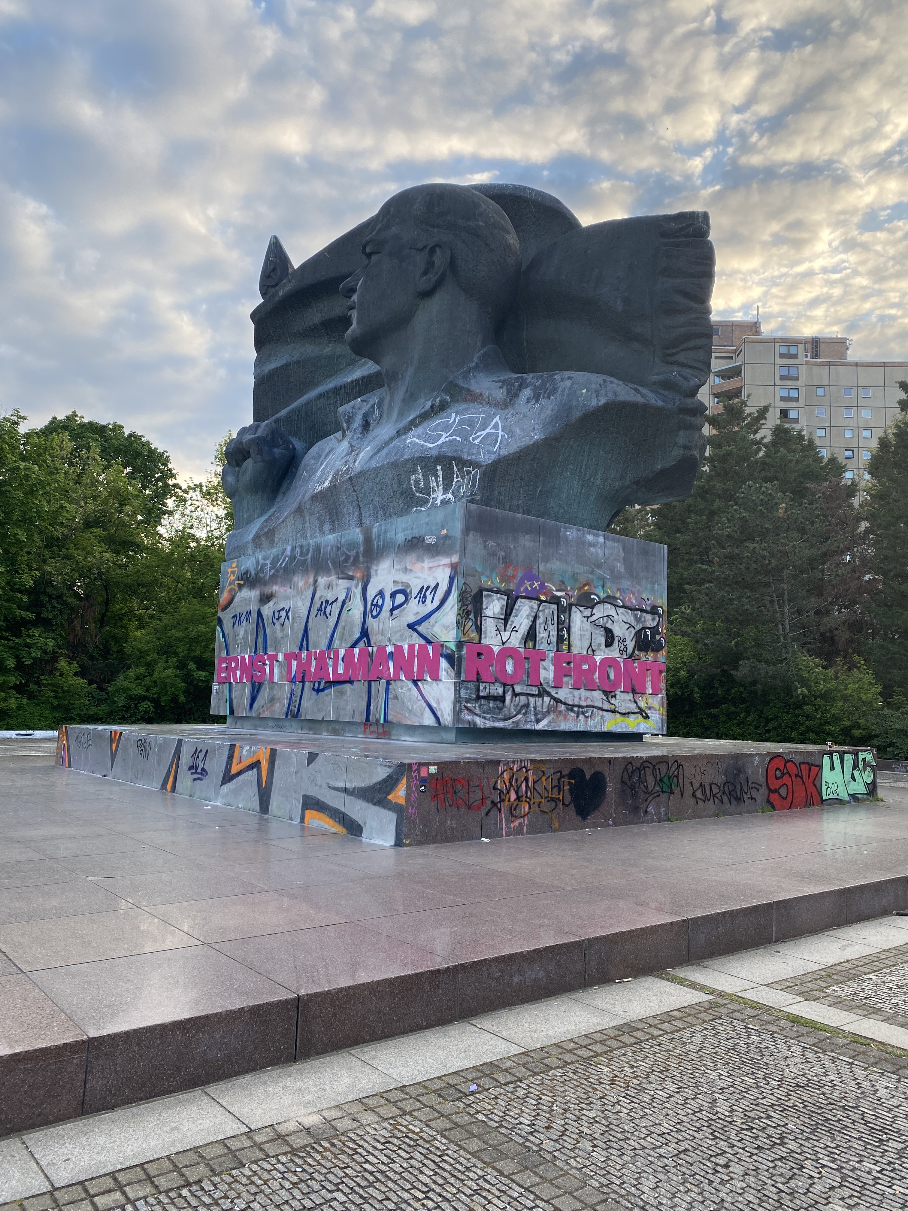 rnst-Thälmann-Denkmal. Obwohl es fast zur gleichen Zeit wie sein Antipode, das Zeiss-Grossplanetarium, entstand – im ersten Bauabschnitt des ETP, das Planetarium im zweiten Bauabschnitt – ist das Denkmal seit 1990 höchst umstritten und muss seitdem immer wieder für ideologische Kämpfe herhalten; ein durchaus verkrampfter Umgang mit diesem beachtlichen historischen Monument ist zu beobachten – die Bewohner und Besucher des Parks gehen da weitaus pragmatischer an das Denkmal ran; es ist ein beliebter Platz für Skater, Für Leute die abhängen, auch mal posieren wollen; ich geb zu, wir haben da auch schon mal den Grill in Teddys Rücken angeworfen. Und in seiner ganzen Pracht sichtbar ist es dann auch wieder nur von der Greifswalder Straße aus – dort führte ja zu DDR-Zeiten auch die Protokollstrecke entlang. Zuletzt wurde ein Wettbewerb zur Kommentierung des Denkmals durchgeführt, mal sehen was das dann wird. Ich würde ja gerne auch mal die beiden Stelen hier vor Ort sehen, die vor dem Denkmal standen, mit den markigen Sprüchen von Ernst Thälmann und Erich Honecker. Die stehen jetzt ja in Spandau in der Zitadelle, das ist sehr weit weg. Nun aber zur Sache: