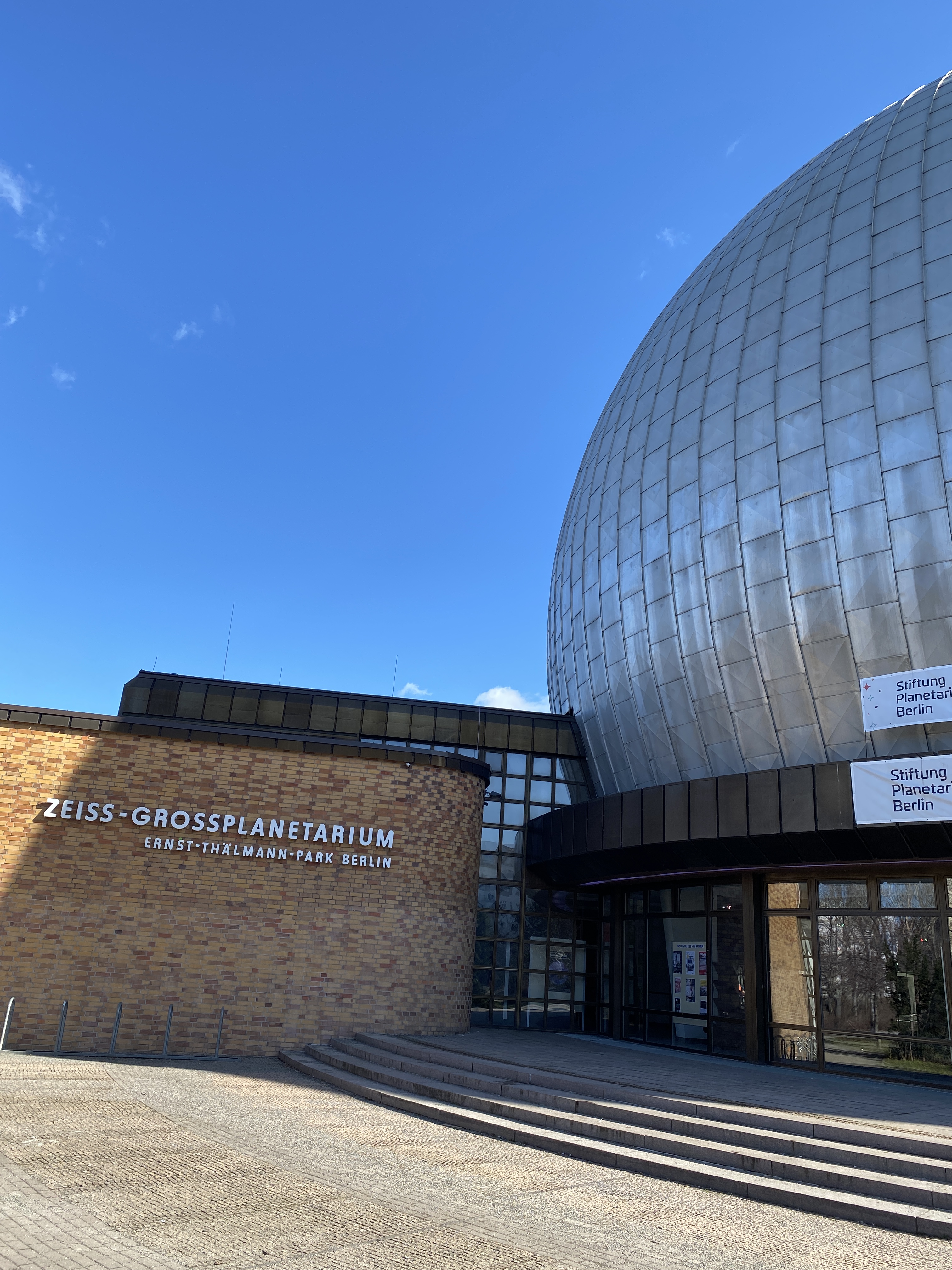 Einmal das Zeiss-Grossplanetarium. Es ist ein Ort der Wissenschaft, ja der ältesten Wissenschaft des homo sapiens, der Astronomie. Das Planetarium wurde vor einigen Jahren – mit viel Bedacht – aufwändig saniert und ist in ganz Berlin bekannt und geschätzt. Es ist seit 2016 Teil der neuen Stiftung Planetarium Berlin. Unter Denkmalschutz steht das Planetarium bis heute leider nicht, genauso wenig wie der hinter dem Planetarium liegende Park Teil mit dem Sternenspielplatz.